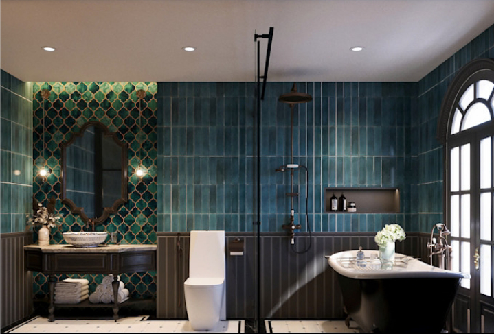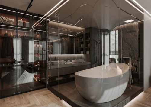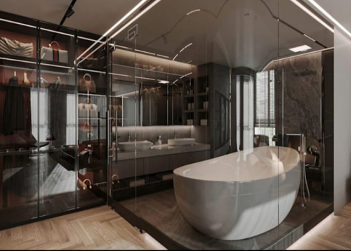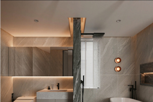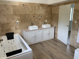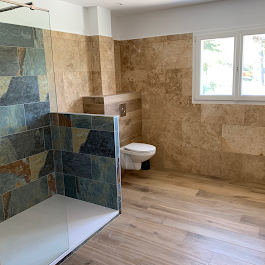 Superbe salle de bain dans notre appartement au 8e étage. LPH a tout géré.